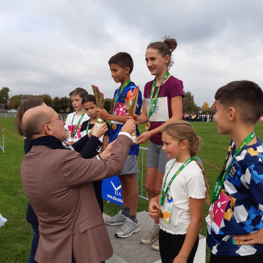 Tout comme ses camarades de classe de CM, six semaines d’entraînements progressifs lui ont permis d’avaler les 1200 mètres du parcours sous les encouragements appuyés de quelques parents d’élèves présents pour l’occasion. Avant la course, la contribution financière des élèves fût transmise solennellement à M. Stevens professeur de sports afin d’acter cette épreuve citoyenne et sportive au profit de l’association ELA et de l’opération « Mets tes baskets et bats la maladie ».